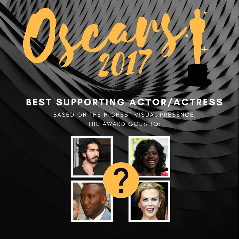 It’s widely assumed that the versatile Viola Davis will take home the Oscar this year, since scooping up nearly every other award in the season for her moving performance in Fences. By media monitoring her presence, her visual buzz leading up to the Academy Awards is close to 40% — nearly double that of the runner-up, Nicole Kidman.
