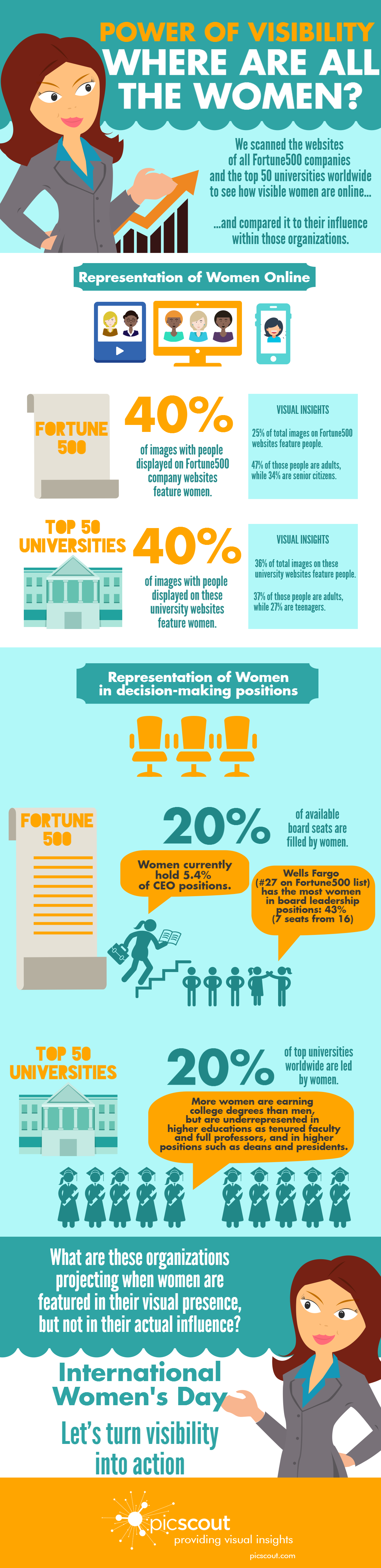 ‘Insights for Business’ to the test: we scanned each website of each Fortune 500 company and the world’s top 50 universities to measure the visibility of women as part of their online brand. This would give us insights into the visual presence of each organization.